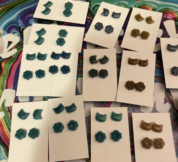 Fractal Earrings Cured in Glowing UV Resin $10 Each Pair